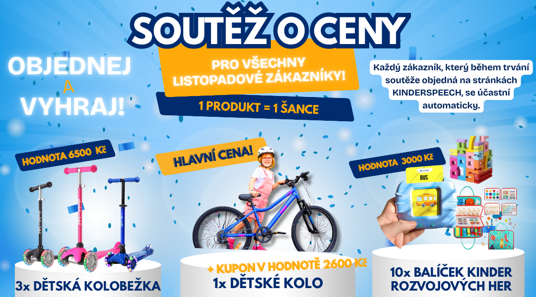 • 3. cena: 10× rozvojový balíček KinderSpeech (v hodnotě 3000 CZK každý).